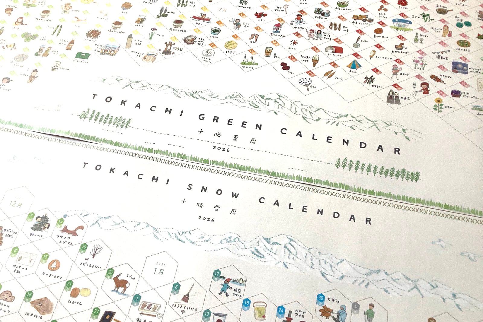 A calendar titled Tokachi Yukigoyomi, capturing the winter of Tokachi from the first snowfall to the thaw. Each day features an illustration of a winter activity in Hokkaido’s Tokachi region.
