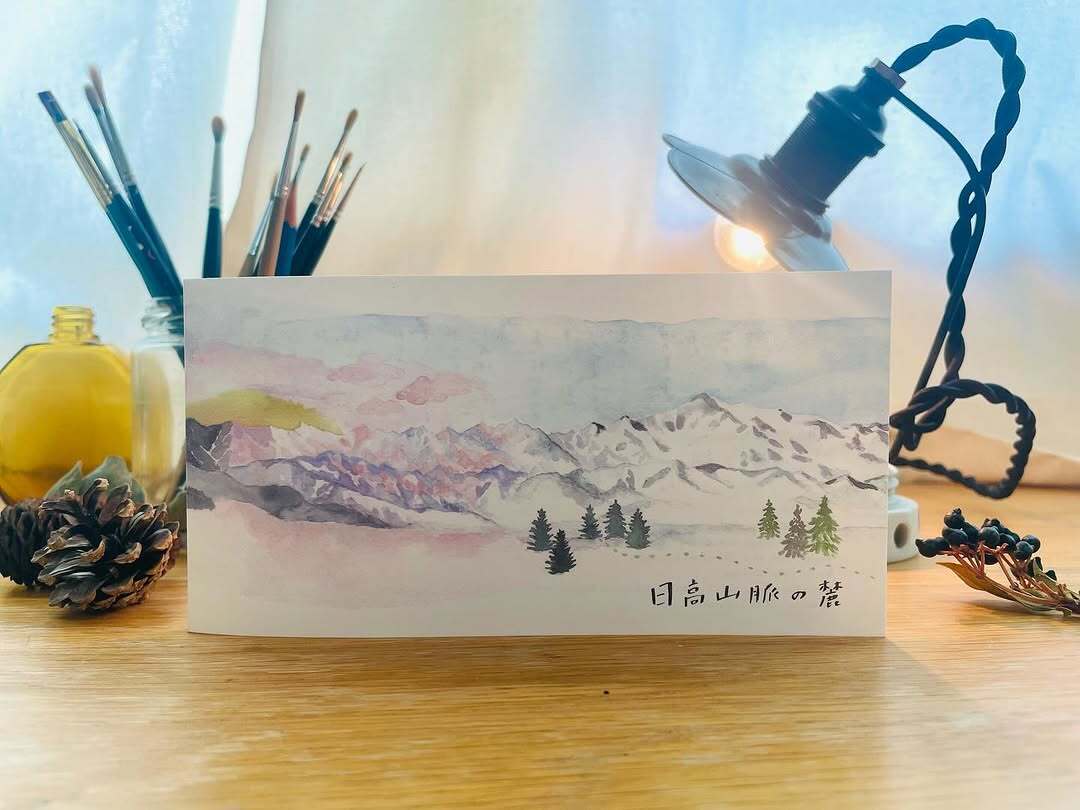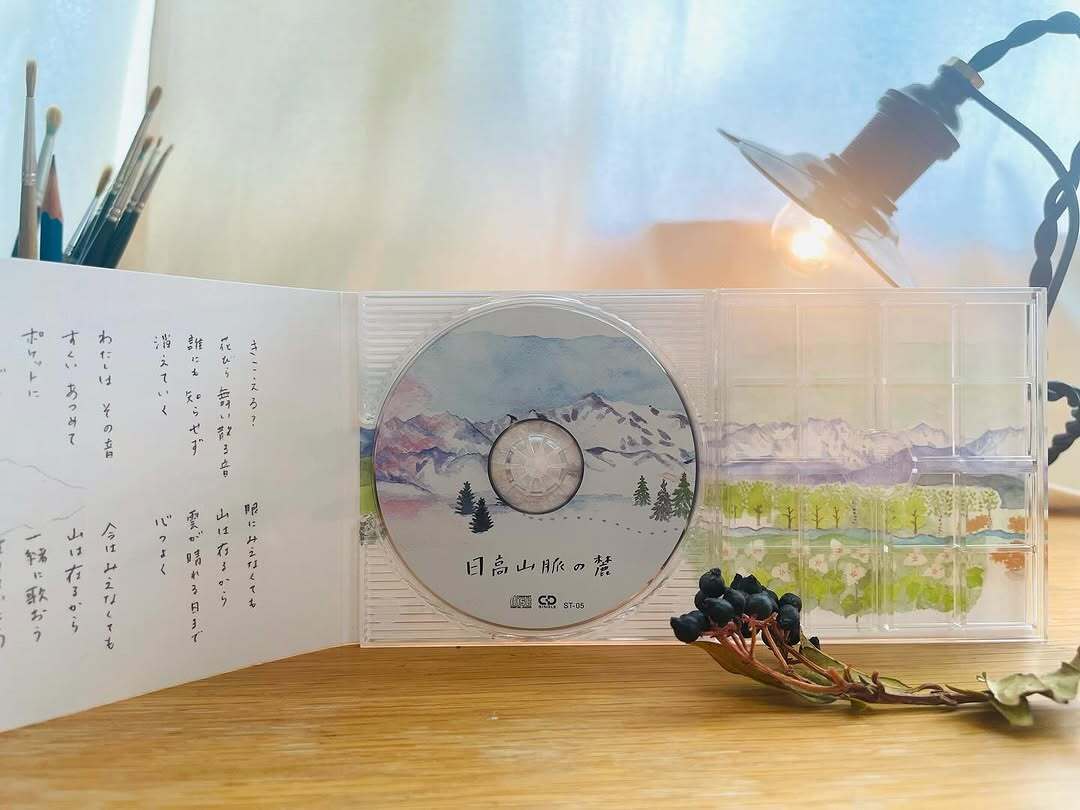 ジャケットには日高山脈の絵がデザインされ、中面には詩が入っています。