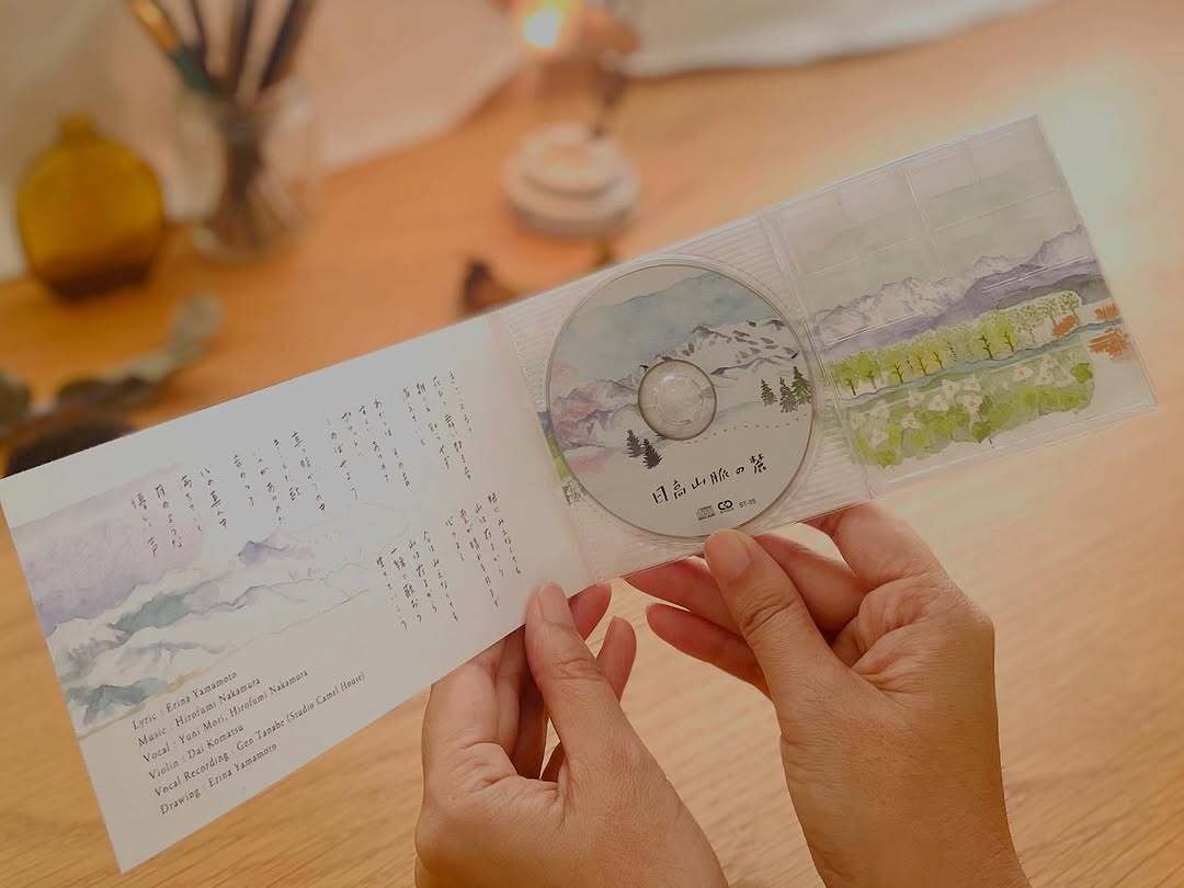 山本えり奈が作った詩に、音楽家の中村大史が曲をつけた「日高山脈の麓」8cm CDです。